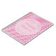 There is a pale pink circle with white marbled patterns on it which contains customizable text so you can include all the important details.