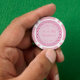 There is a pale pink circle with white marbled patterns on it which contains customizable text so you can personalize this design.
