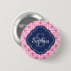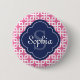 Pink Square Chain Pattern Blue Monogram 2 Inch Round Button