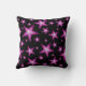 Modern design with a "shining" pink and white stars on a black background. Throw pillow with a customizable design for you to personalise with your own text, images and ideas. This is a digital art image created using original photographs and digital techniques and printed onto fabric, it does not shine or contain real sparkles.