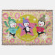 Penguins Holly Jolly Christmas holiday throw blanket features a beautiful design featuring a star and orbs pink and cream background, a mustard yellow ring, pink star centre, snowflakes of white, three adorable penguins with sweaters, winter hats, ice skates, and scarves, and customizable white text that reads Have a Holly Jolly Christmas!