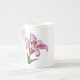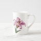 Photo of a pink Stargazer Lily on a white ceramic mug