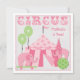 Step right up to the greatest party on earth, starting with our Pink Circus birthday invtations that you can easily customize with your child's name and party information. Features pink elephants, a pink big top, green balloons, and the some very cool text!