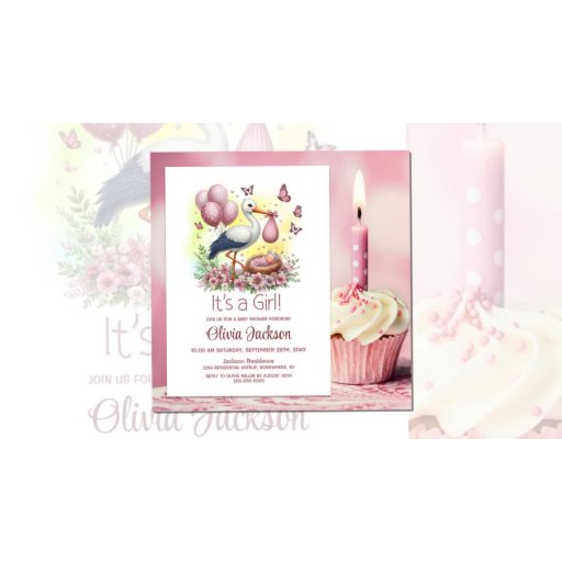 Pink stork baby girl congratulations on the adoption of a baby girl.