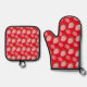 Pink Strawberries Red Kitchen Pattern Oven Mitt & Pot Holder Set