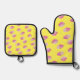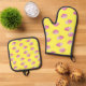 Pink strawberry cupcakes on yellow oven mitt & pot holder set