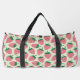 I actually had been searching other sites for a duffle gym bag and I couldn't find any. This one is just what I was looking for with all the features. The inside zip pocket, the outside mesh pocket and LOTS of room inside. Love the printing. Really like how the floral print turned out.