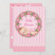 Pink Stripe Baby Shower Invitation with Sleeping Baby in Floral Wreath