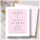 Celebrate your child's baptism with our beautiful pink baptism invitations! These invitations feature a clean white border and a light pink background, with a stunning gold effect cross that adds a touch of elegance to your special occasion. The back of the invitation features a stripe pink and white design, giving it a charming and polished look. Our invitations are printed on affordable paper, making them an excellent choice for those who want to celebrate their child's baptism without breaking the bank. They are also easy to personalize, allowing you to add your own wording and details to make the invitation truly unique. Whether you're hosting a small gathering or a large celebration, our pink baptism invitations are perfect for inviting your friends and family to share in this special moment with you.