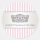 Pink and white stripes with silver and pink princess crown tiara and, "A little princess is on her way!" wording elegant sweet envelope seal sticker.