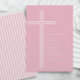 Celebrate her special day with this elegant pink striped Confirmation invitation. Featuring a modern white line cross on a soft blush pink background with coordinating vertical stripes on the reverse, this design blends timeless Catholic tradition with a sweet, feminine aesthetic.