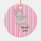 Pink Striped Hippo Ballerina Christmas Ornament