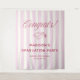 The tapestry features soft pink stripes that create a serene and inviting backdrop, exuding a sense of timeless elegance. The gentle hues provide a perfect canvas for the berry-colored font, adding a touch of vibrancy and sophistication to your announcement. All colors can be changed to suit your personal style or event theme, allowing for a truly customized experience.