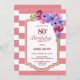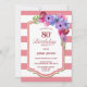 Pink Striped Spring Floral 80th Birthday Invitation
