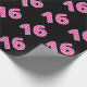 This fun wrapping paper design features the number "16" having a dark pink and light pink striped pattern, on a black coloured background. Wrapping paper like this might be used when wrapping gifts being given to celebrate somebody’s 16th birthday, or a couple’s 16th wedding anniversary, or some other sixteenth event or milestone. [~Z0000379]
