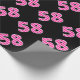 This fun wrapping paper design features the number "58" with a dark pink and light pink stripes pattern, on a black coloured background. Wrapping paper like this might be used when wrapping presents being given to celebrate somebody’s 58th birthday, or a couple’s 58th wedding anniversary, or some other fifty eighth event or milestone. [~Z0000379]