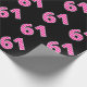 This fun wrapping paper design features the number "61" having a light pink and dark pink striped pattern, on a black coloured background. Wrapping paper like this might be used when wrapping presents being given to celebrate somebody’s 61st birthday, or a couple’s 61st wedding anniversary, or some other sixty first event or milestone. [~Z0000379]