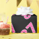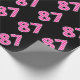 This fun wrapping paper design features the number "87" with a light pink and dark pink stripes pattern, on a black coloured background. Wrapping paper like this might be used when wrapping presents being given to celebrate somebody’s 87th birthday, or a couple’s 87th wedding anniversary, or some other eighty seventh event or milestone. [~Z0000379]