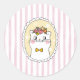 A cute cat sticker with a soft pink and white striped background. Perfect for laptops, water bottles, journals, or anywhere you want a little cat themed aesthetic. A great gift for cat lovers and fans of pastel designs.