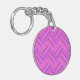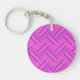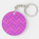 Pink stripes diagonal weave pattern keychain