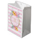 Pink Stripes Gold Frame Flower Wedding Medium Gift Bag