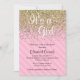 Beautiful pink and gold glitter sprinkle baby girl shower invitation.