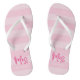 Perfect for the summer and a day at the beach, this trendy flip flops feature the word "Miss" in pink brush script against a preppy pink stripes pattern background.