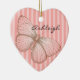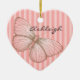 Pink Stripes girly chic modern butterfly name personalized heart Christmas ornament