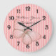 Pink Stripes with Butterfly Large Clock