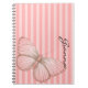 Pink Stripes girly chic modern butterfly personalized name journal notebook