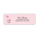 A soft pink return address label featuring pink balloons and a stroller. Perfect for baby shower invitations and birth announcements.