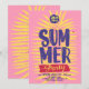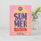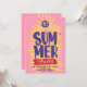 A grunge-style invitation to a summer party showing a pink backdrop with a palm-leaf overlay. The card is easy to customize with your wording, font and font colour. Not exactly what you're looking for? All our products can be custom designed to meet your needs at no extra charge. Simply contact us at askpixieprints@aol.com. Coordinating products available at your request at no additional charge.