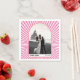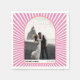 This gorgeous, eye-catching wedding paper napkin features a lovely photo of the happy couple in a stylish arch-shaped frame. To make it look even more unique and special, the names of the couple and the date of the wedding are printed beneath the photo. For a groovy 70s inspired look, the napkin is adorned with pink and white sunrays radiating from behind the arch frame. This adorable and stylish design will make a stunning addition to any wedding table and will bring a retro vibe to the special day.