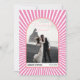 Faites part de votre gratitude à vos invités avec ce Carte de remerciements mariage élégant et branché. Il a une ambiance les années 70 avec un arrière - plan solaire rose et blanc et un cadre en arc qui met en valeur votre belle photo en couple. Les mots "Merci" sont écrits dans une police rétro qui correspond au thème. Au verso de la carte, vous pouvez écrire votre propre message personnalisé pour express votre reconnaissance pour leur présence et leurs cadeaux. Cette carte est parfaite pour tous ceux qui aiment les designs vintages et super.