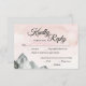 This Pink Sunrise Mountain wedding response card with meal choice brings a classy and unique, yet simple and casual touch to your wedding. The sunrise and sunset shades of pink, mauve, peach, blush, coral and dusty rose, kissed with starry gold glitter around the styled calligraphy text brings a peaceful, minimal nature to the watercolor painted grey mountains for a mountain themed marriage celebration.