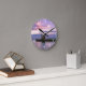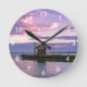 Pink sunset over lake round clock