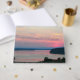 Retirement celebration guest book that features the picturesque image of a colourful, pink seascape sunset along with retiree's name and retirement date printed in stylized, silver foil print. Back of guest book features similar image. Edit name and date on front of guest book and replace with your own names and dates as desired. Select your foil print colour.