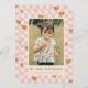 Une carte festive de la Saint-Valentin aux coeurs bronzés éparpillée sur un damier rose. Le message et l'information du client sont placés sous une grande photo, et le dos de la carte comporte un motif de coordination.