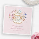 Experience the charm and elegance of our Blush Pink Wildflower Bridal Tea Party Paper Napkin. Adorned with stunning hand-painted watercolor florals in deep purple, dusty blue, and blush pink with sage greenery, these napkins beautifully complement cream and gold floral teacups and saucers, all set against a delicate blush pink background with a cute pink butterfly. Each element is designed to create a cohesive and enchanting atmosphere, ensuring every detail of your bridal tea party is thoughtfully coordinated. Elevate your event with these exquisite napkins, making your celebration truly unforgettable.