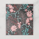 Place cards with an elegant pattern made with pink flowers, teal leaves, and red berries on a dark background.