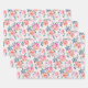 Pink & Teal Floral Pattern Wrapping Paper Sheet