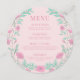 Pink teal green floral retro round Menu Card Plate