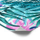 This is a pattern of pink and teal tropical palm and monstera leaves on a light turquoise background.
