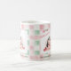 Little teddy bear is pink, cute and has lots of Christmas gifts. "Merry Christmas". A pink and light green gingham or checked watercolor border makes the holiday mug look pretty fine. Be sure to edit the family name and date.