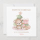 Pink Teddy Bear Girl First Christmas Card
