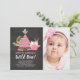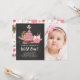 Cute woodland animals & teepee "Wild One" photo birthday invitation set on a black chalkboard background with a coordinating pattern back.