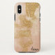 = iPhone X Case = With a rough distressed look rose blush and golden glitter with gold ink splatter.