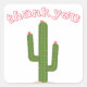 This charming southwest style sticker features an image of a green cactus plant with pink flowers and a pink Thank You greeting printed in a cute prickly font highlighted against a crisp white background.