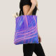 Lines of pink light streak through blue on this cute tote bag, forming a pretty abstract design. The same design is on the back of the bag. Bright and colourful!