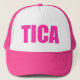 Pink Costa Rica souvenir trucker hat. Due to a quirk of speech, Costa Ricans are called Ticos. Since Spanish uses gendered nouns, a Costa Rican man is a Tico, and a Costa Rican woman is a Tica.